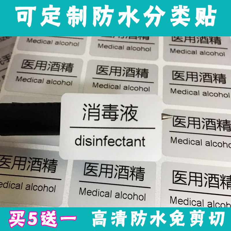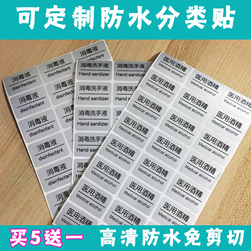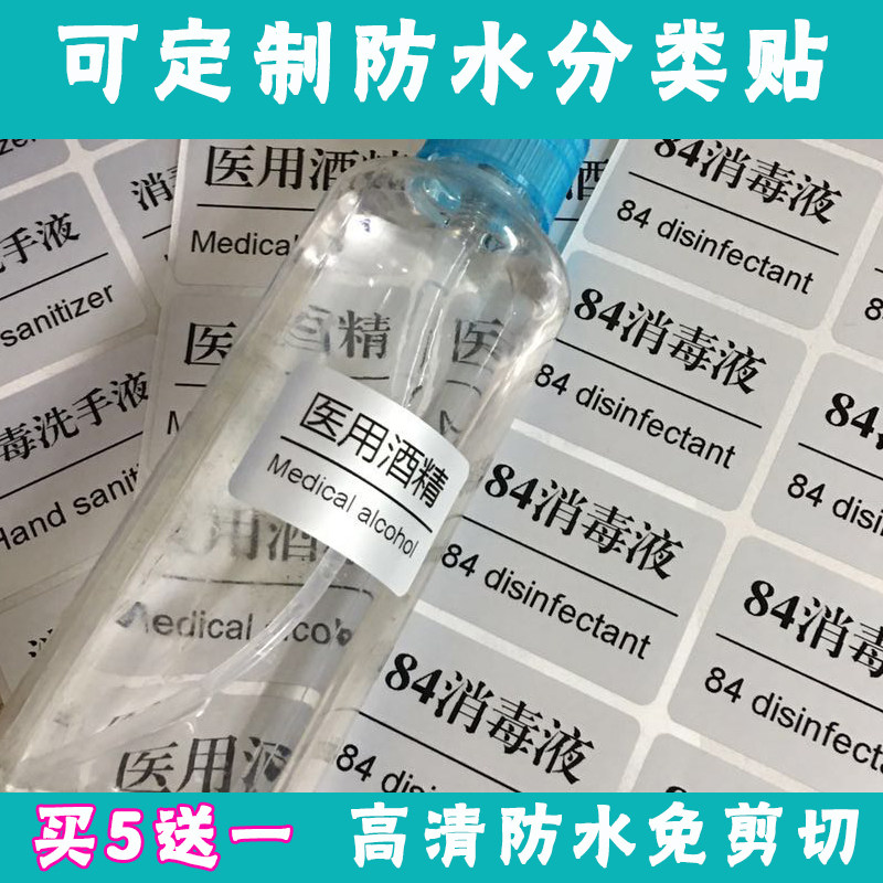 Free Washing Hand Sanitizer Alcohol Disinfectant Disinfection Sanitizer 84 Disinfectant Medical Alcohol Sticker Waterproof Label