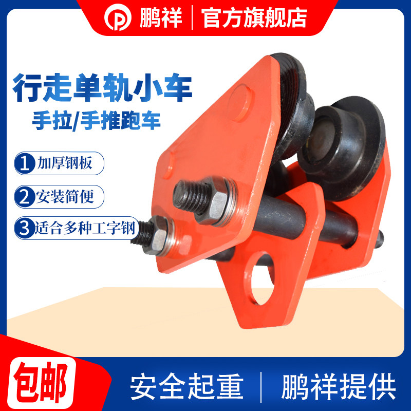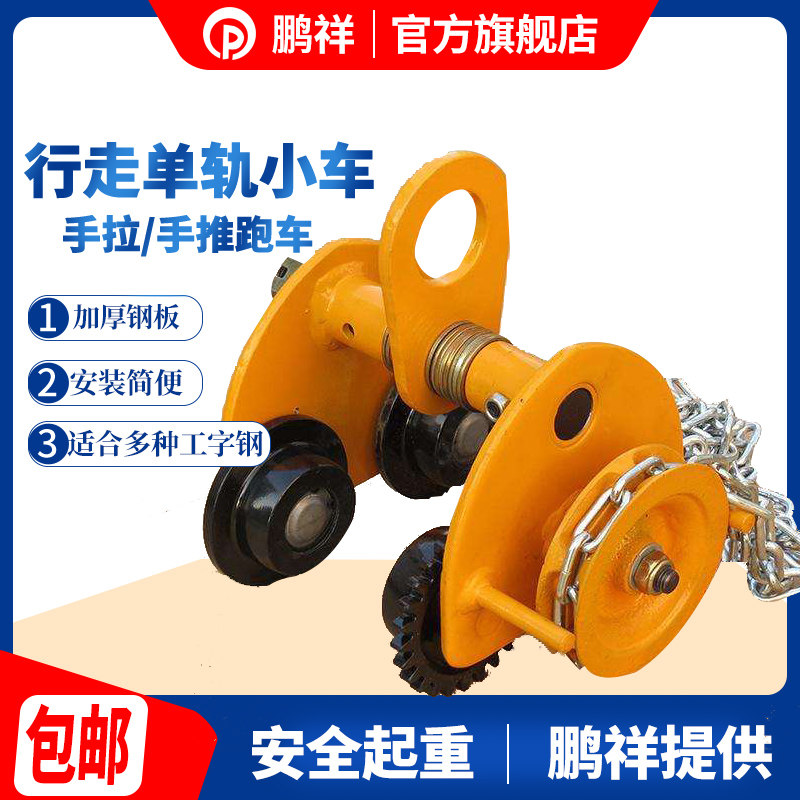 Pengxiang 1 ton hand push sports car I-beam pulley 2 tons monorail crane hoist special hand pull trolley