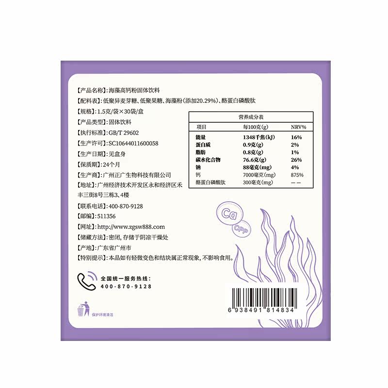 Oligomerized isomaltose oligosaccharides Fructose Seaweed Powder (20 29%) casein Phosphate Peptide