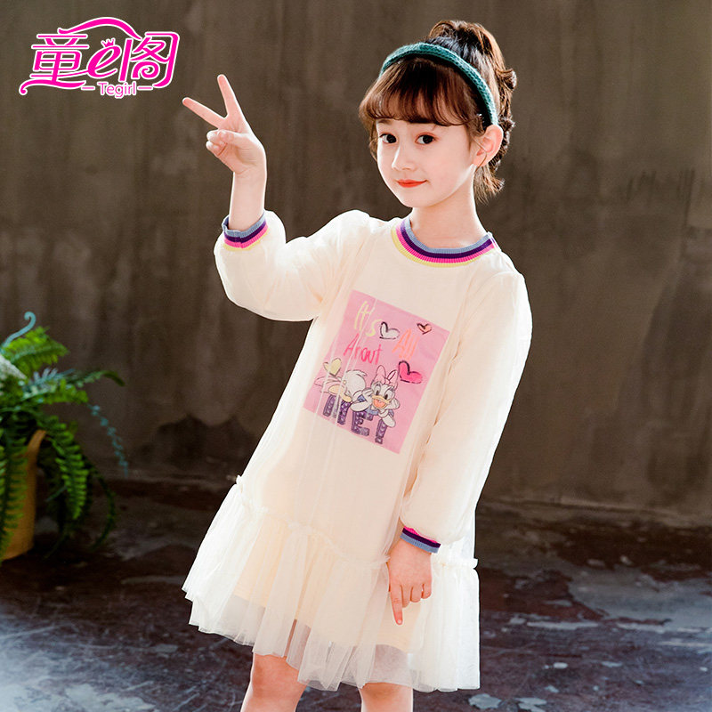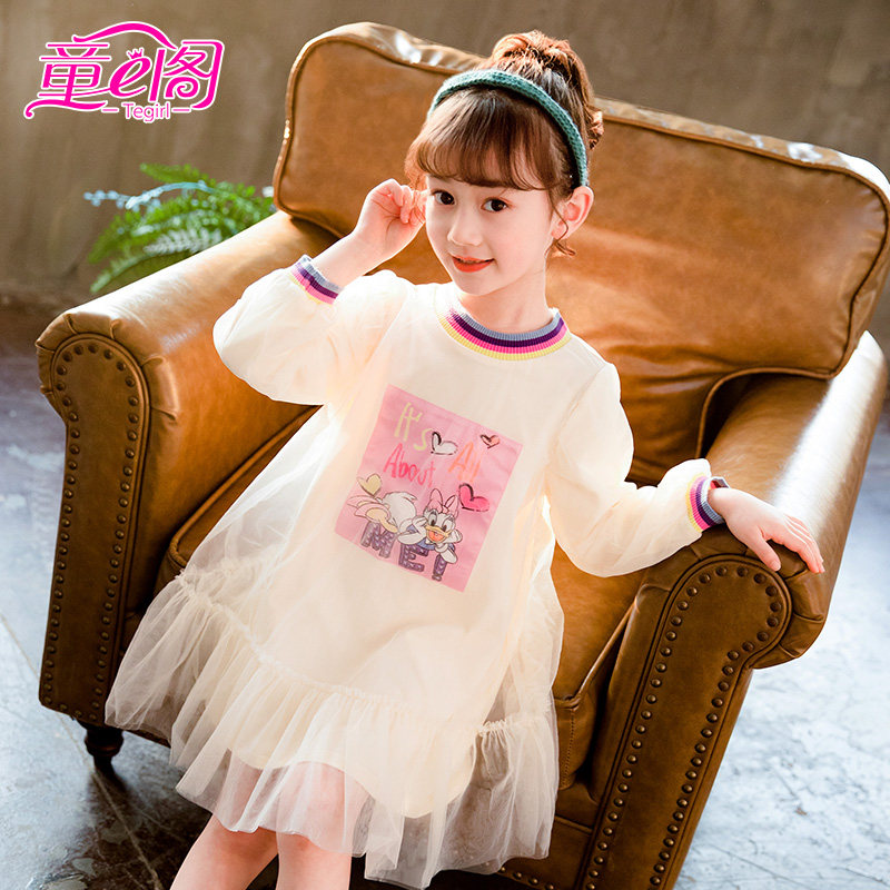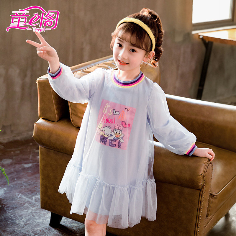 Girl Long Sleeve Pure Cotton Mesh Yarn Dress Spring Dress New CUHK Child Princess Wind Polo Skirt Children Yarn Dress