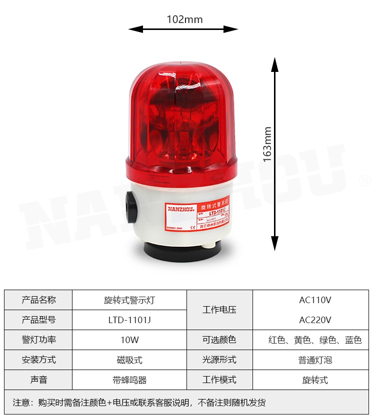 Nanzhou magnetic suction sound and light alarm LTD-1101J ceiling rotating warning light buzzer 220v 24V