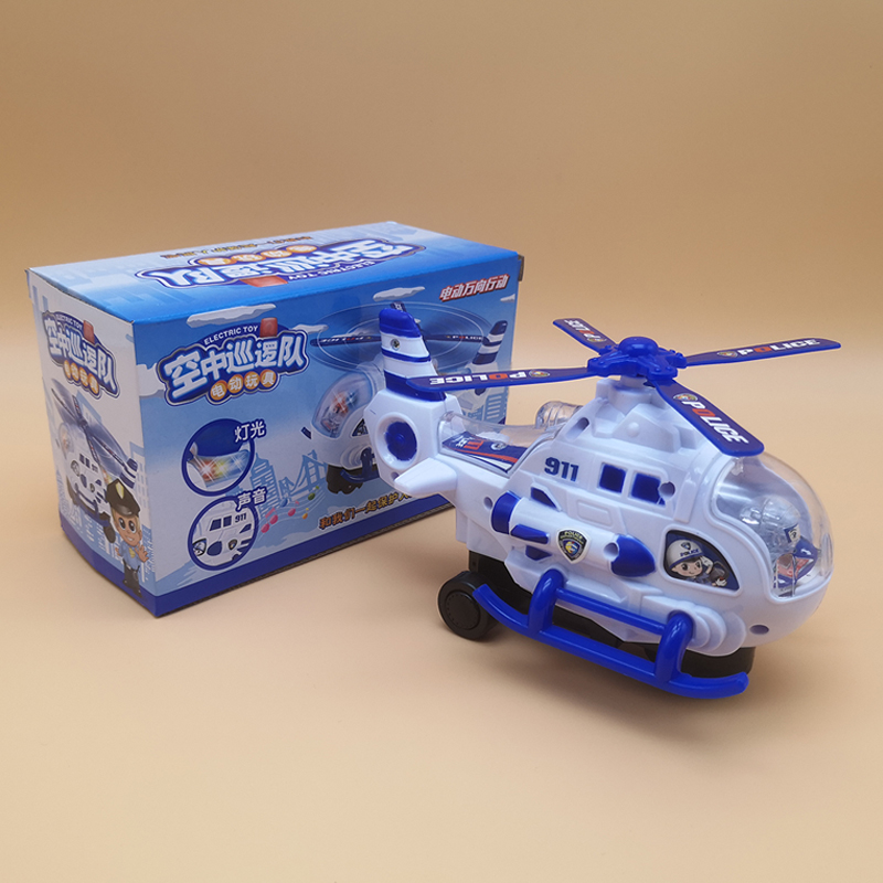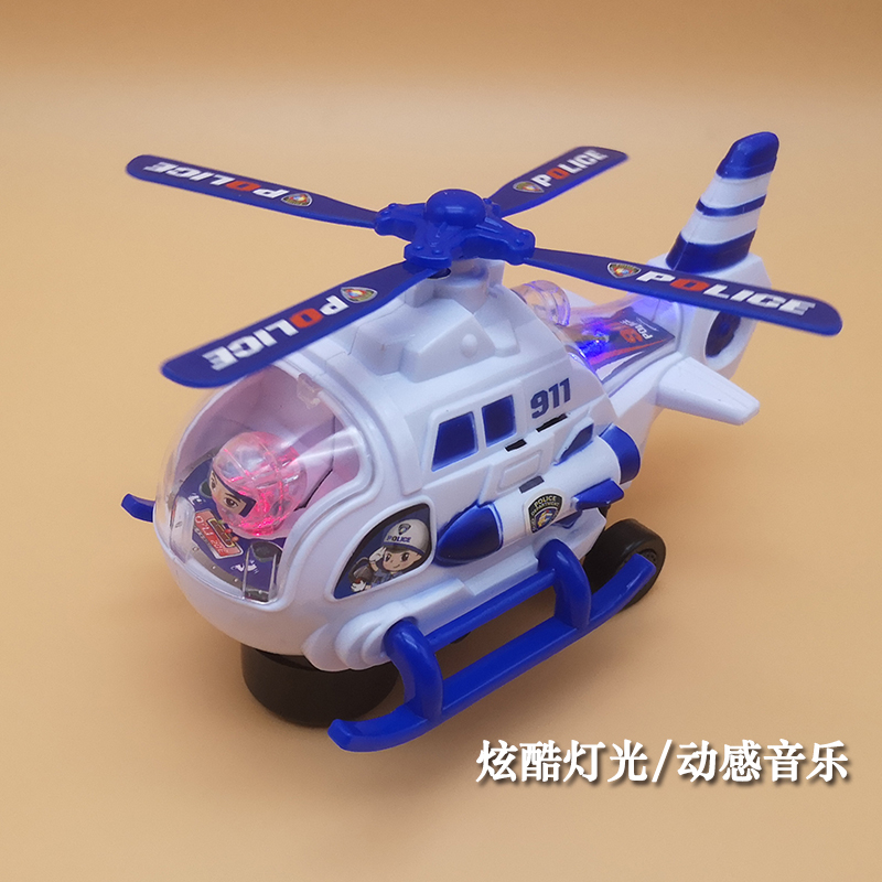 Children's electric universal wheel toy car light music plane 1-3-6 years old baby small helicopter boy police car