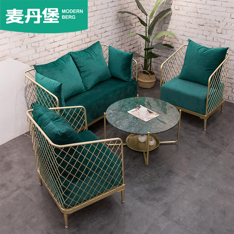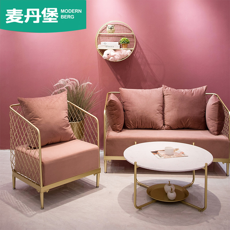 Small apartment sofa coffee table combination living room furniture Nordic wind net red style modern minimalist single double iron sofa