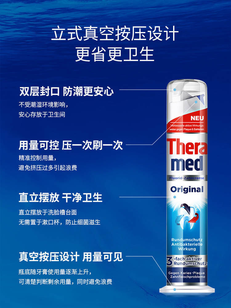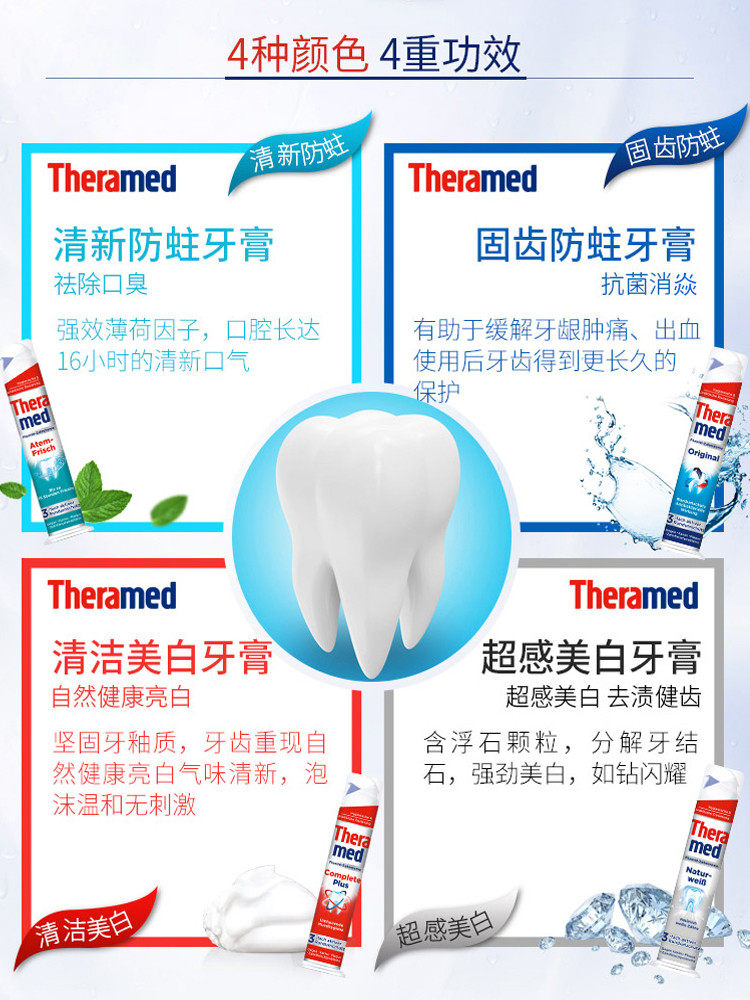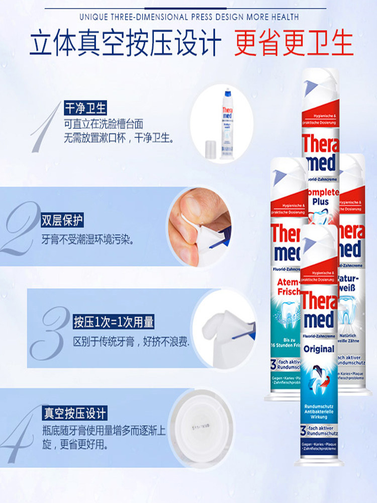 Germany imported Henkel Theramed Schwarzkopf pressing upright toothpaste cleans bad breath and refreshes the mouth