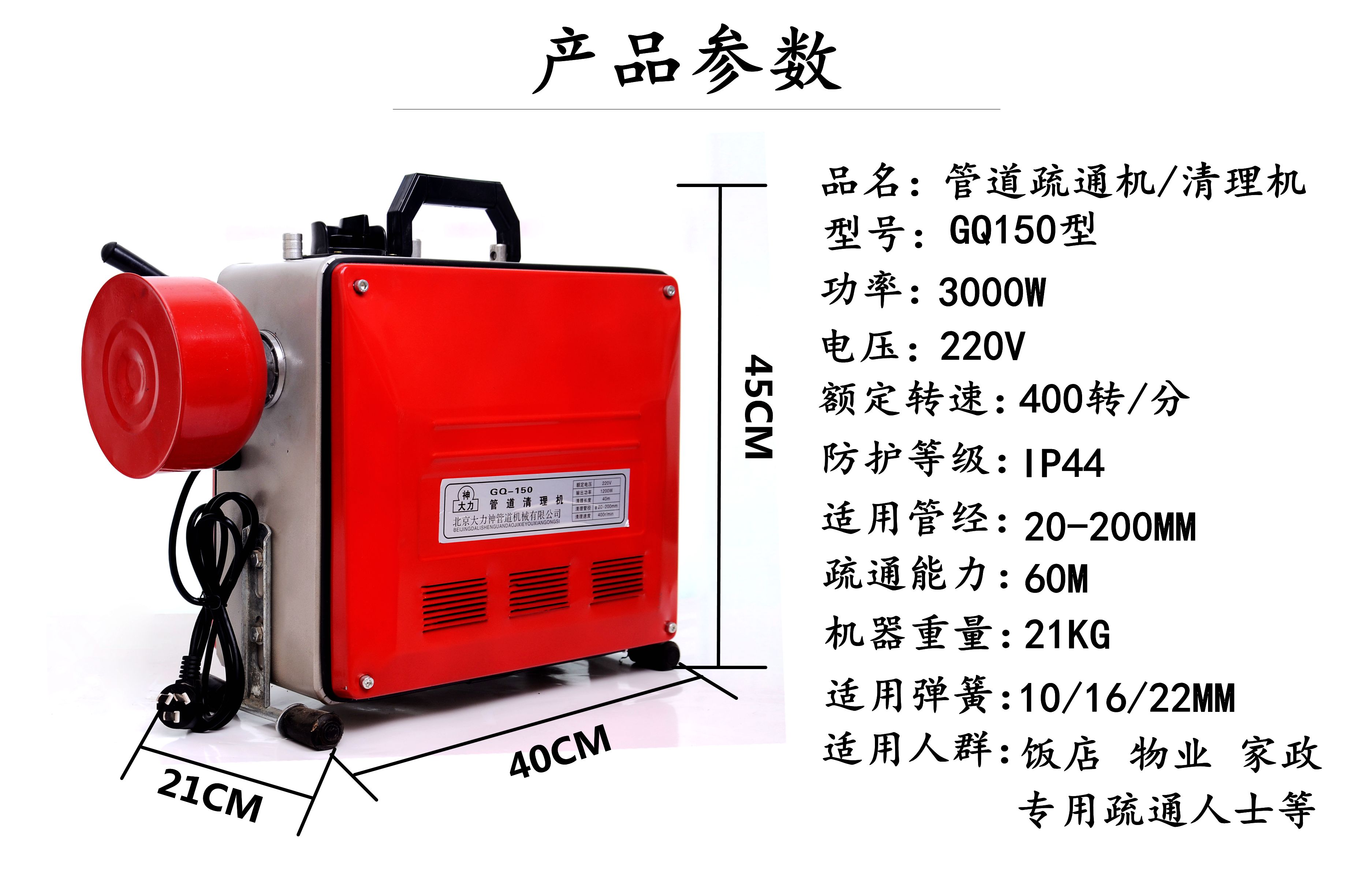 High power 150 type 3000 watt electric pipe dredging machine professional sewer cleaning tool dredging artifact
