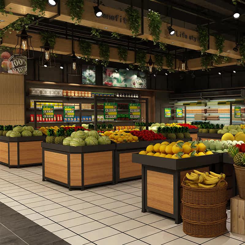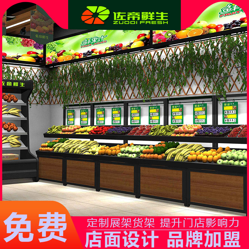 Fruit shelf display stand steel wood fresh fruit and vegetable shop decoration layout design Zuodi supermarket double-layer Zhongdao cabinet