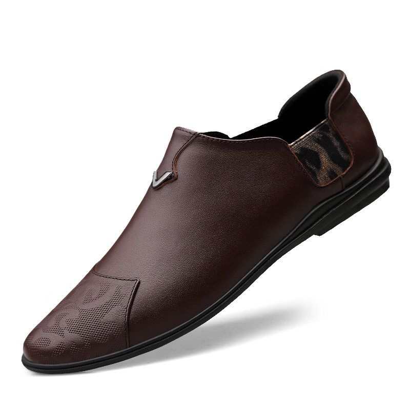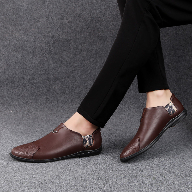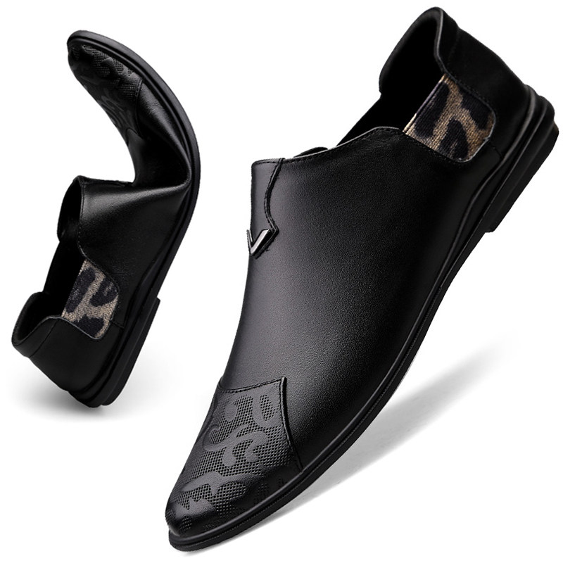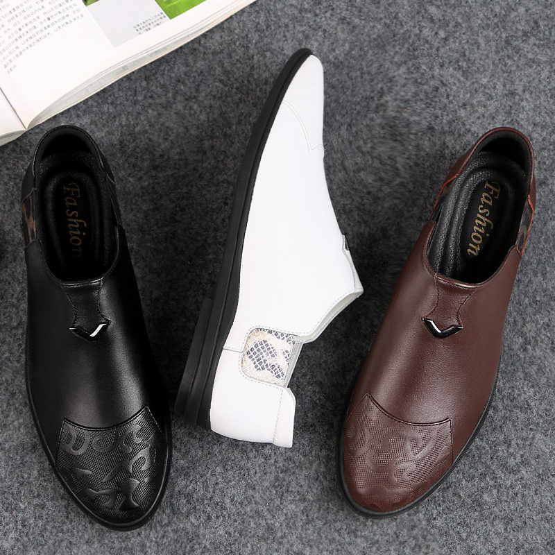 Boomer Business Leather Shoes Man 2022 New Spring Genuine Leather Embossing 100 lap breathable Inron Leisure One foot Foot Shoes