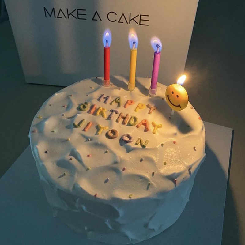 South Korea's Smiles Face Romantic Birthday Little Candle Mesh Red Cake with Decorative Swing Accessories Creative Cute Party Arrangement