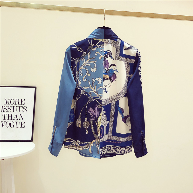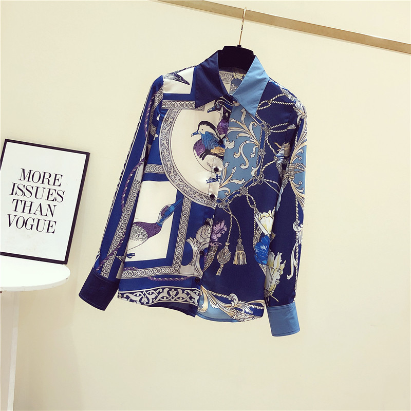 South Korea Retro Port Blizzard Spinning Printed Shirt Woman Spring Autumn 2021 New Korean Version Loose Design Sensation