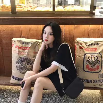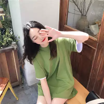 Loose T-shirt women's Korean version of lazy wind large size casual all-match ins tide net red Hong Kong style mid-length short-sleeved women's top