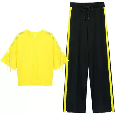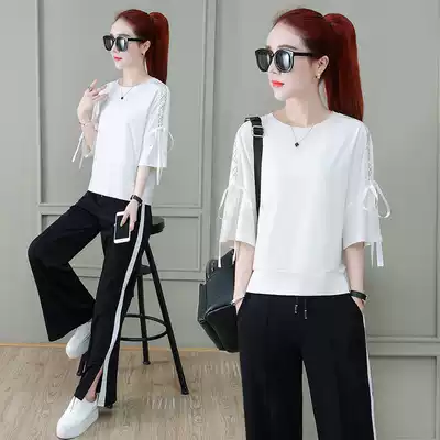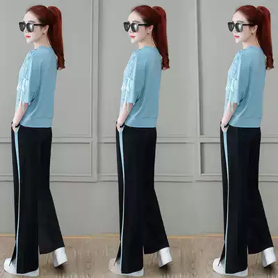 Leisure sports style suit women summer 2021 New thin fashion foreign style small man wide leg pants two piece set