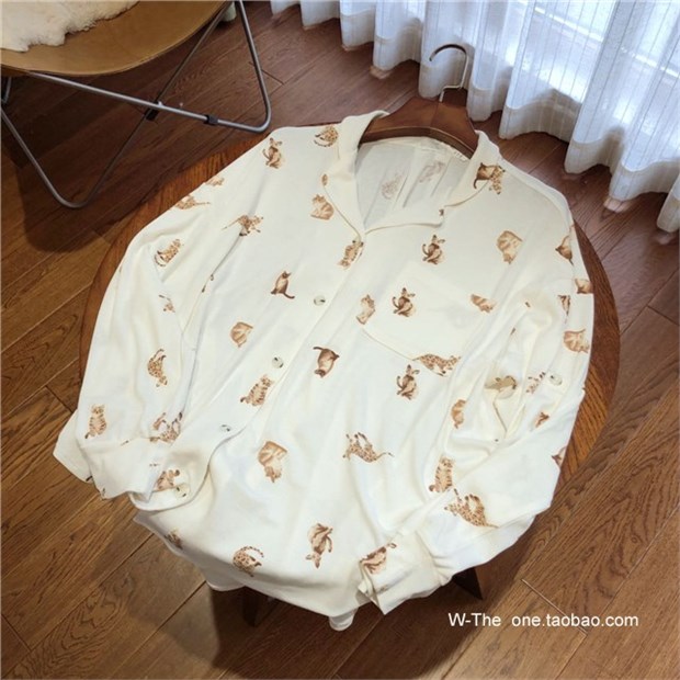 Old guests closed their eyes comfortably collapsed around wearing cute cat cherry Model Cotton Pajamas set