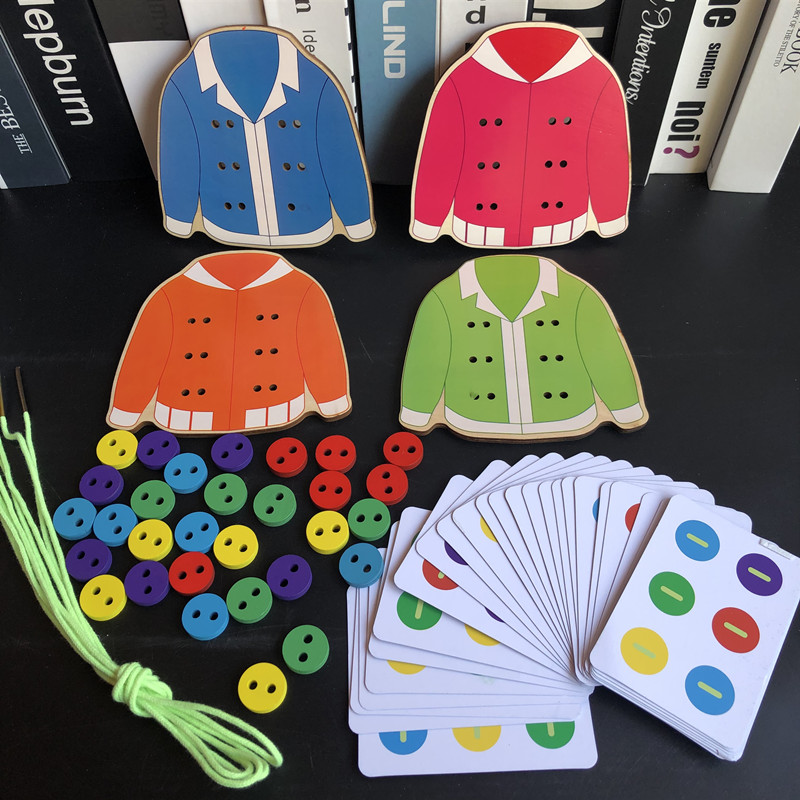 Kindergarten desktop game concentration threading children's hand-eye coordination ability threading button color cognitive toys