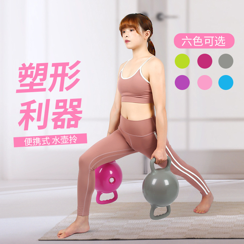 Yoga kettle bell micro-dense fitness can be injected with water binaural double handle men and women dumbbells thin waist hip home slimming exercise