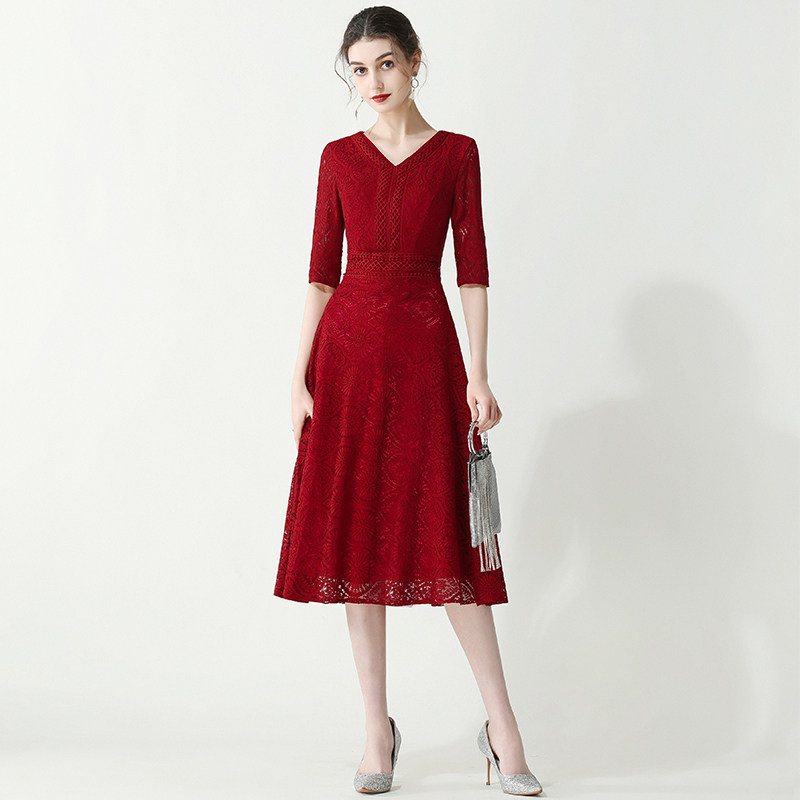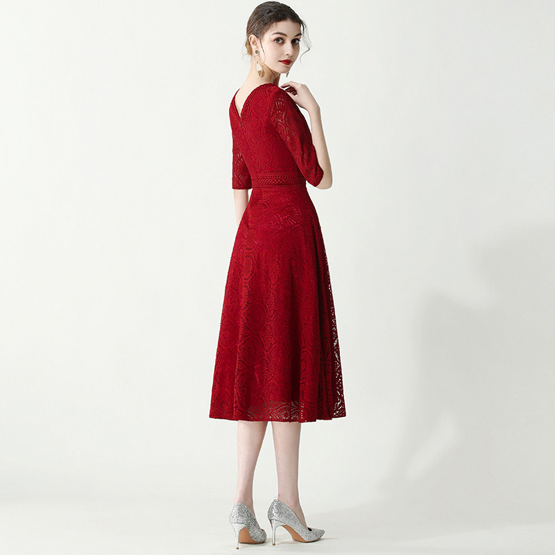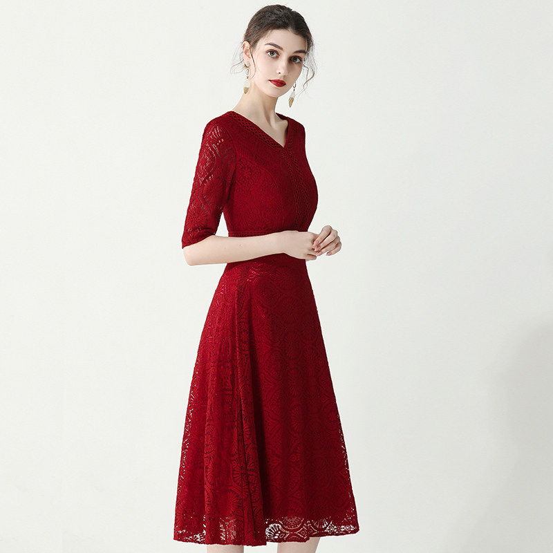 Toast wine red can usually wear bride 2021 new marriage engagement V receives thanks to the dinner dress spring summer