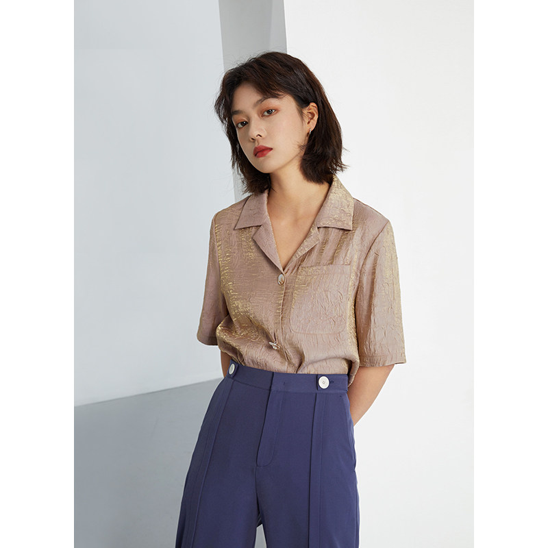 Self-fitting small pleated shirt women's design sense niche shirt is thin 2021 summer dress new short-sleeved top trendy