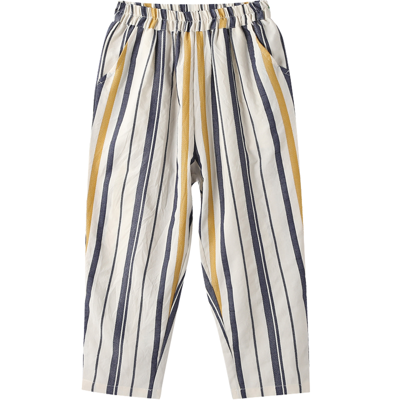 Cotton nine-point pants Girls loose summer thin section wild stripe casual pants Harun in the big child little girl pants