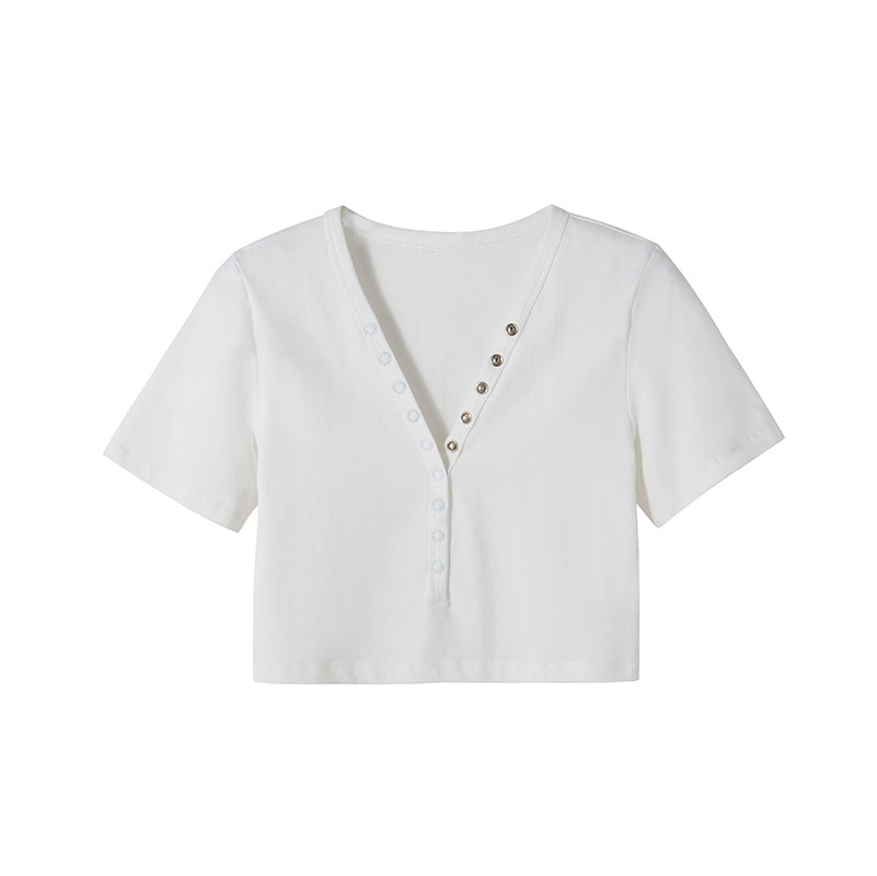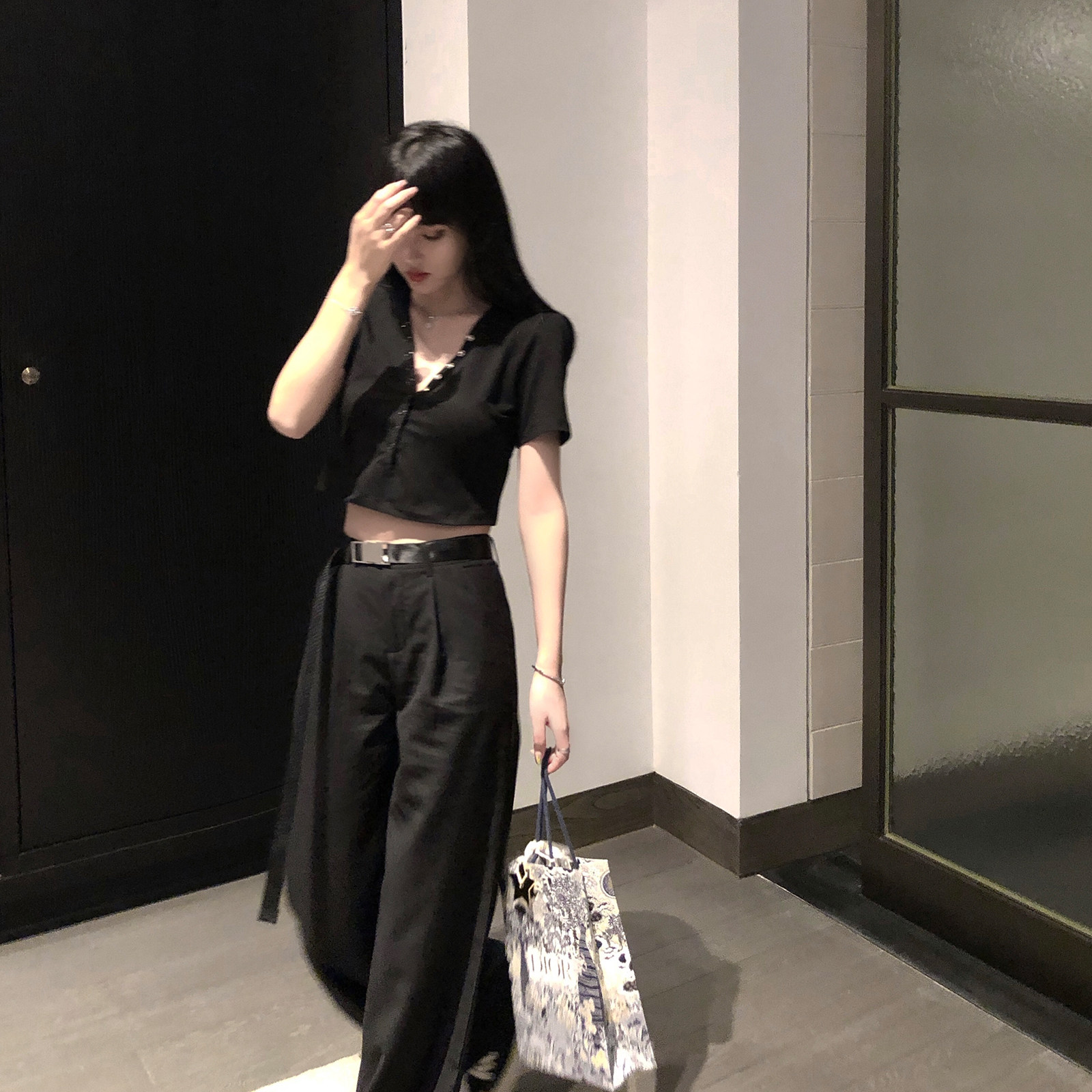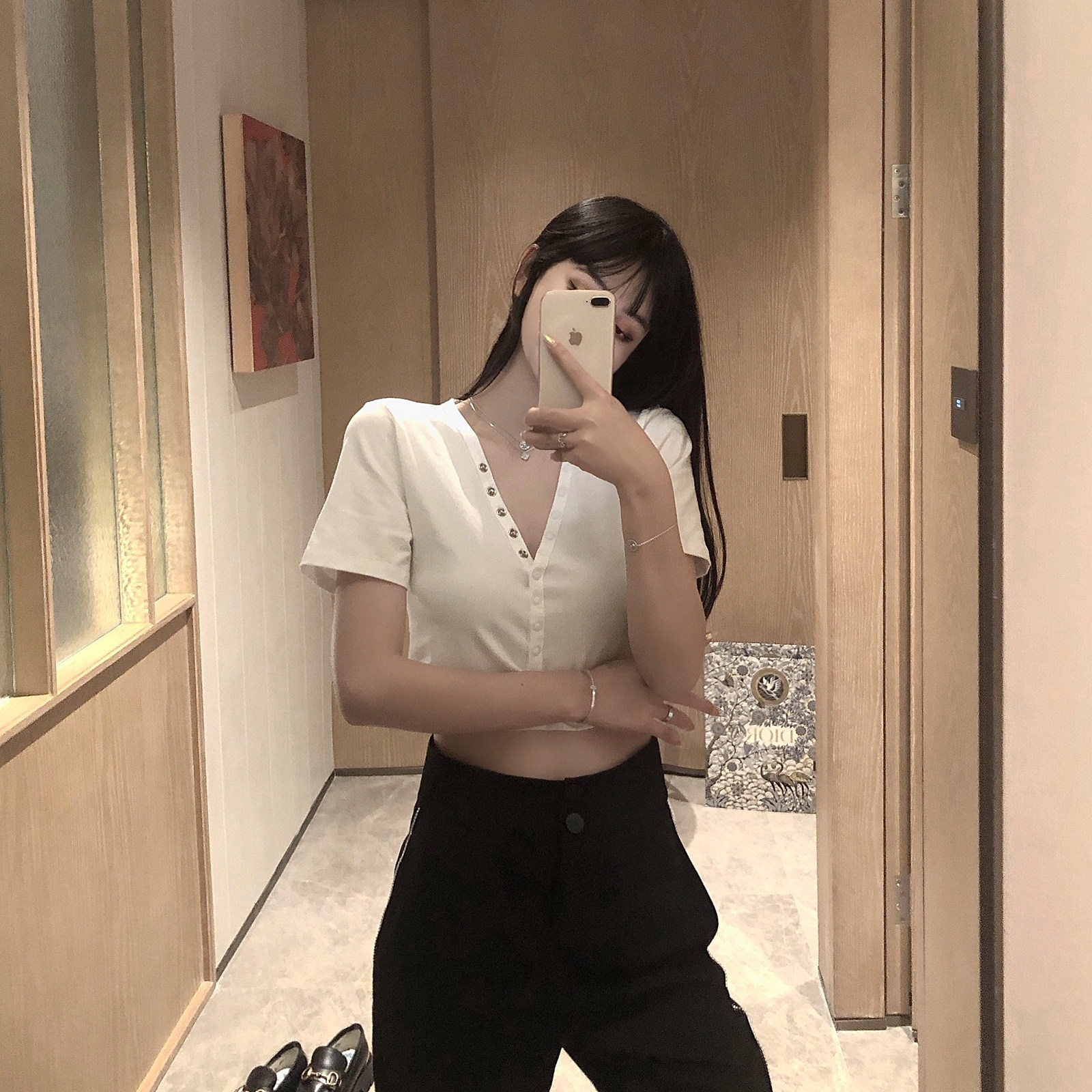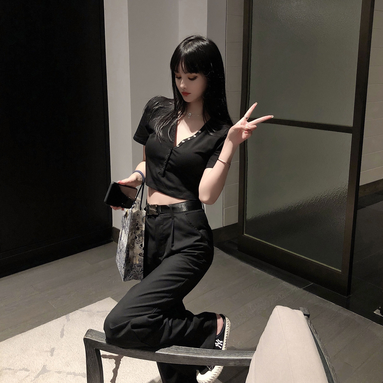 Navel cotton T-shirt black and white women's short-sleeved 2021 new spring Korean version loose all-match short top ins tide