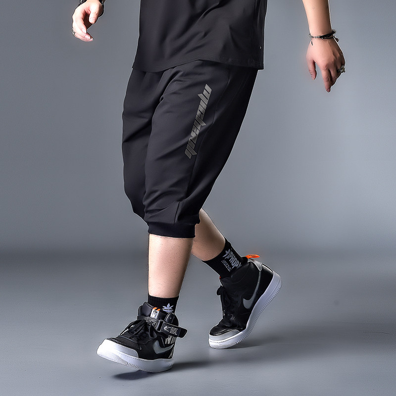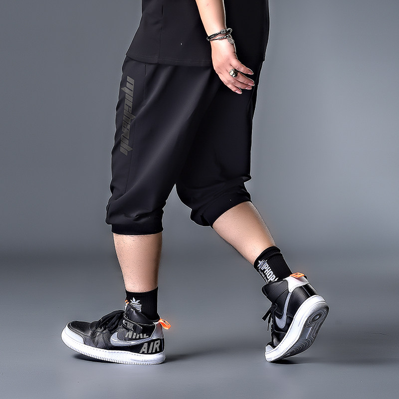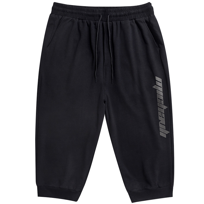 Large size for men's summer seven-pants fashion 100 hitch-style pants 50% pants plus fattening up printed elastic casual pants