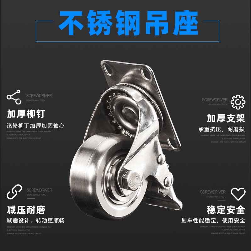 3-inch 4-inch 304 All stainless steel universal wheel trolley shelving trundle bearing with brake heavy wheel roller wheel