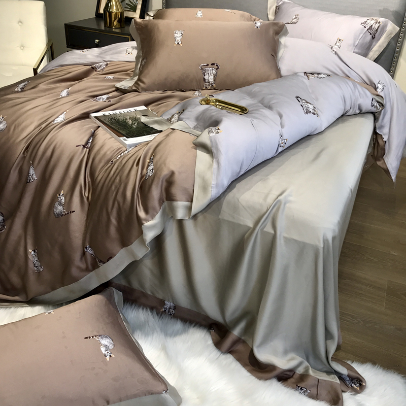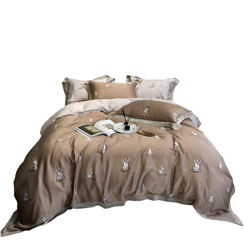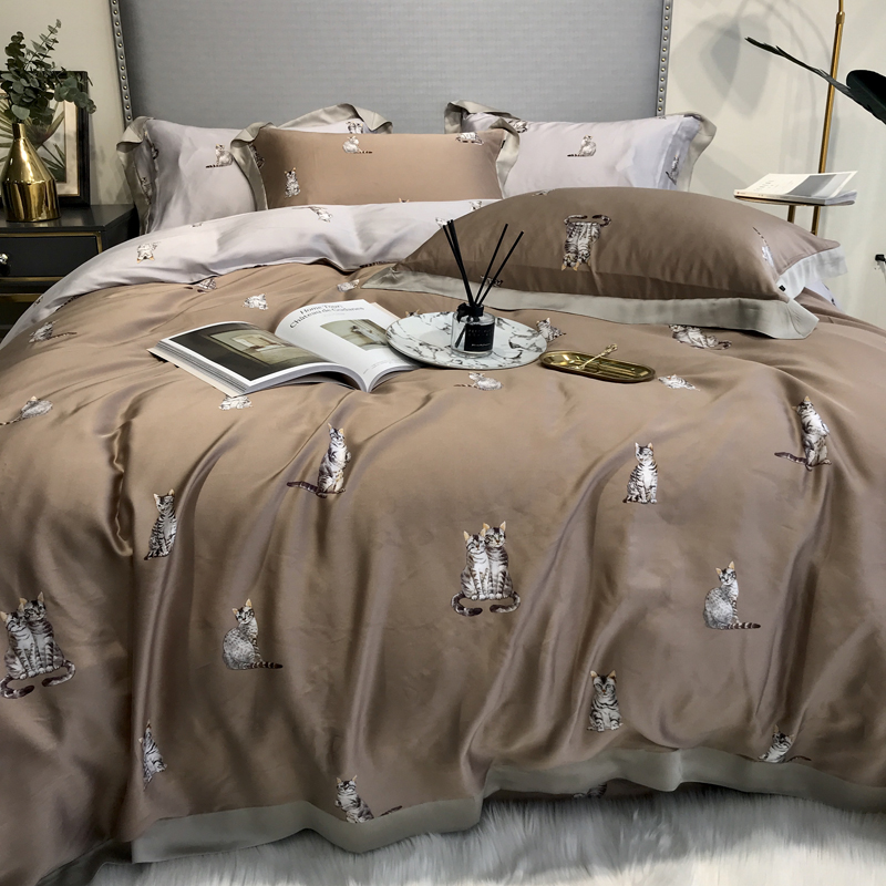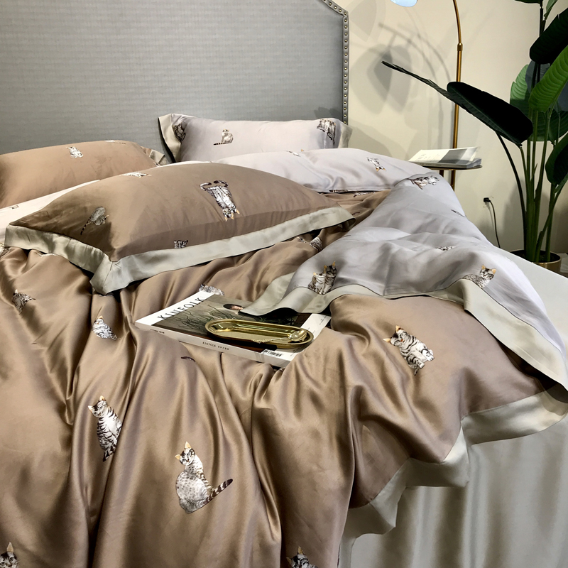 60 days silk four pieces of ice silk sliding summer nude sleeping double face with a card ventilation cute kitty quilt cover bedding