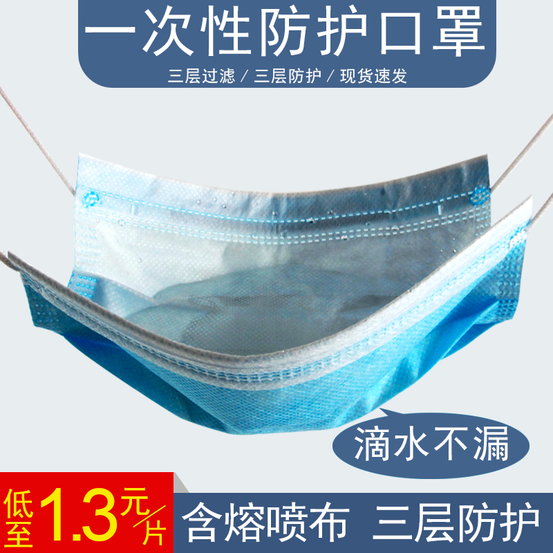 Disposable mask three-layer spot anti-dust breathable 50 only unwoven cloth cloth anti-droplets adult ear-hanging protective use