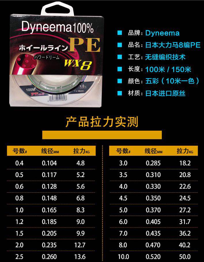 8 series 100 meters (ten meters one color) 8 series 150 meters (ten meters one color)