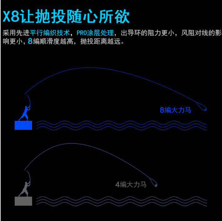 Japan imports 8 series of vigorous horse fishing line main line 8 series of PE line 150 meters fishing sub-line sub-line raft fishing line