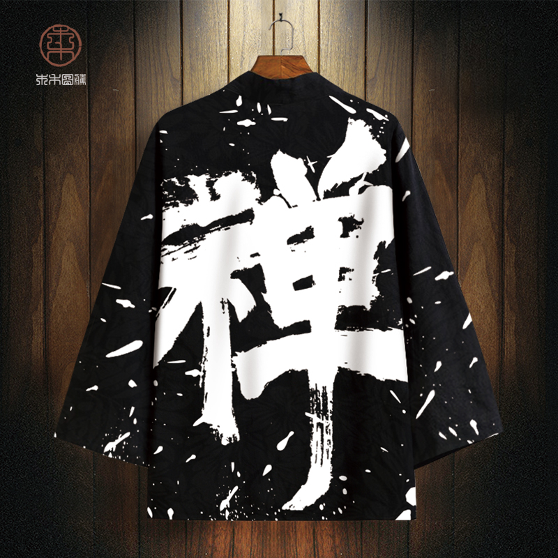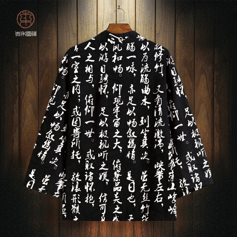 Chinese Air Duct Robe Male Tide Suit Chinese Character Literal Printed Jacket Hanfu Men's Tang Dress And Summer Thin Hanfu