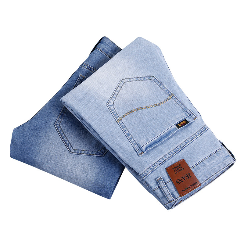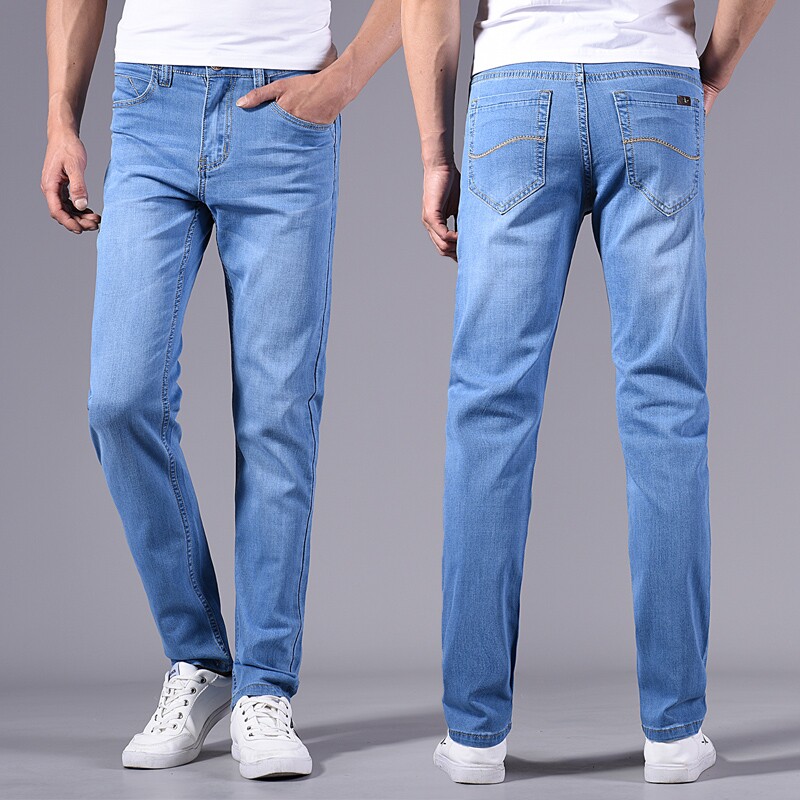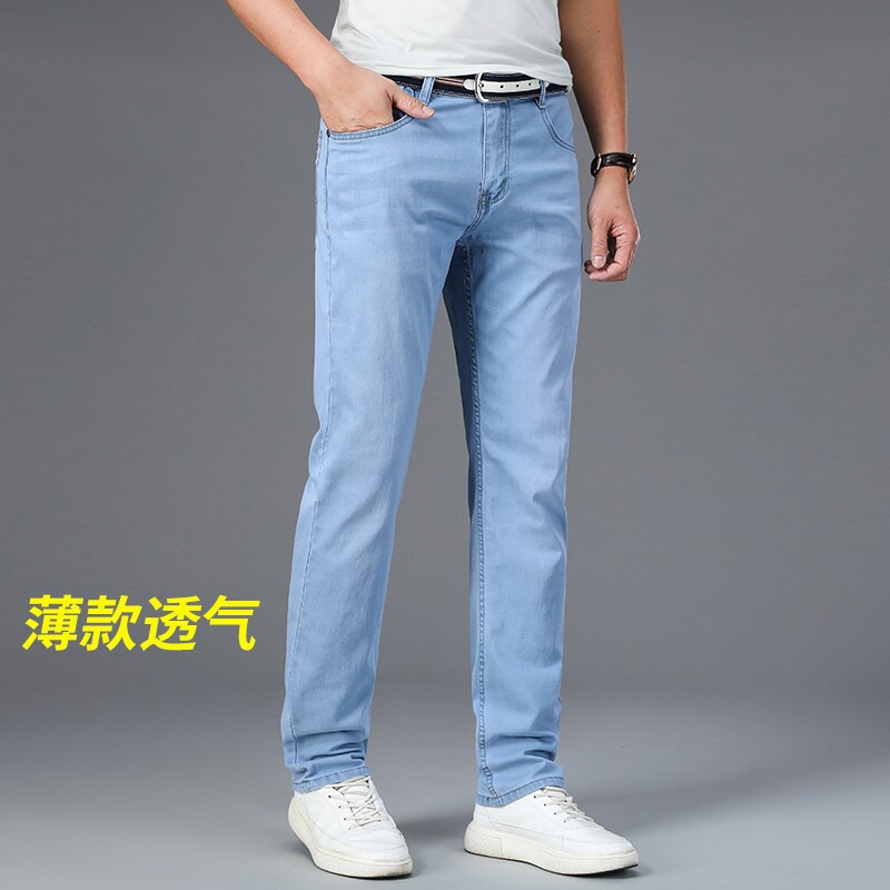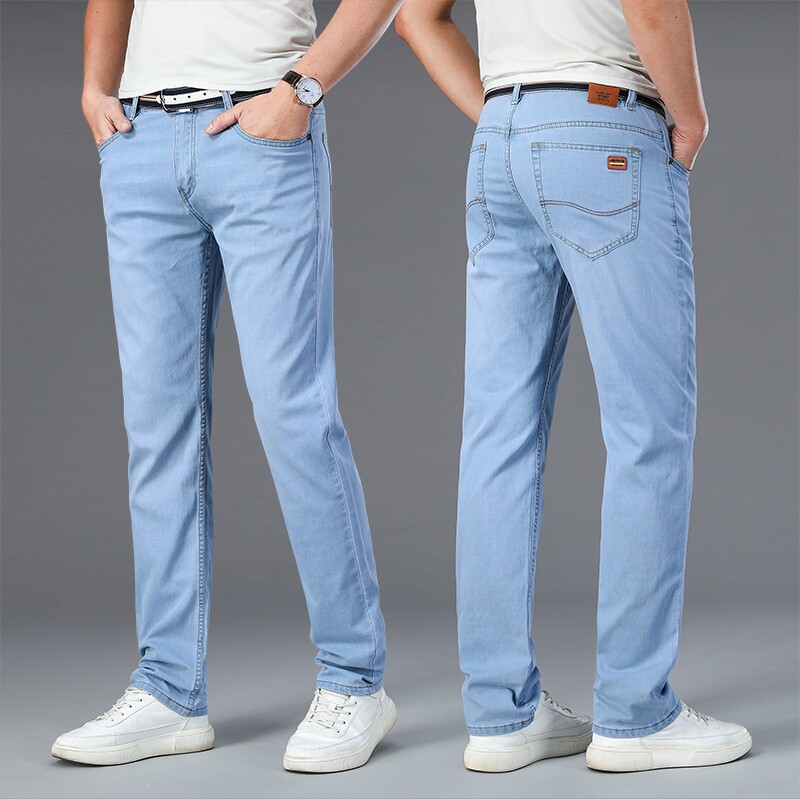 2022 spring and autumn light color jeans men's thin loose straight slim blue and white casual pants men's light blue - Taobao