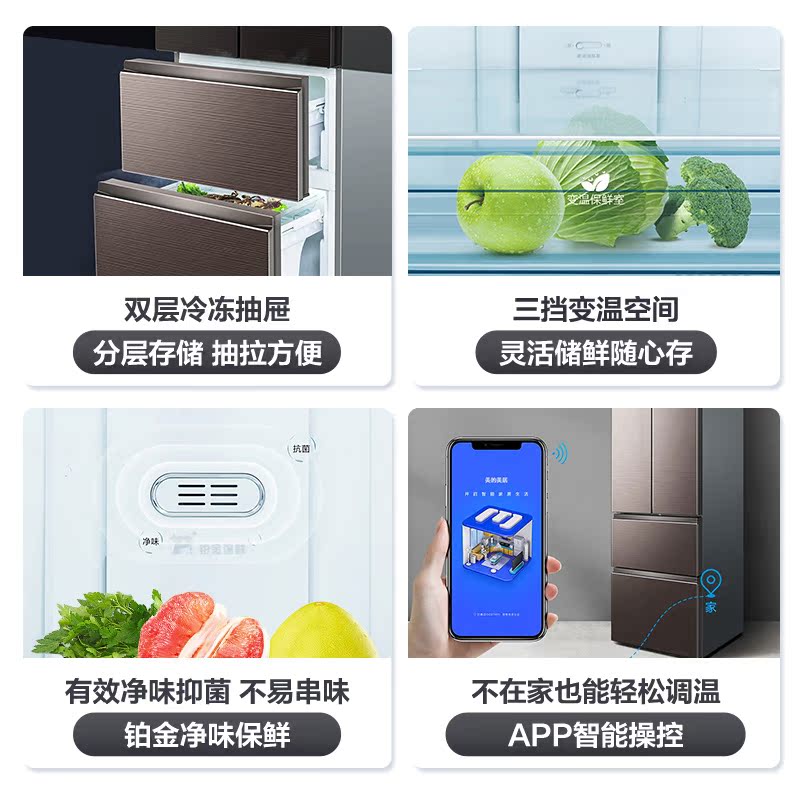 Midea 319WFGPZM(E) household refrigerator four-door French multi-door energy-saving inverter frost-free smart home appliances refrigerator