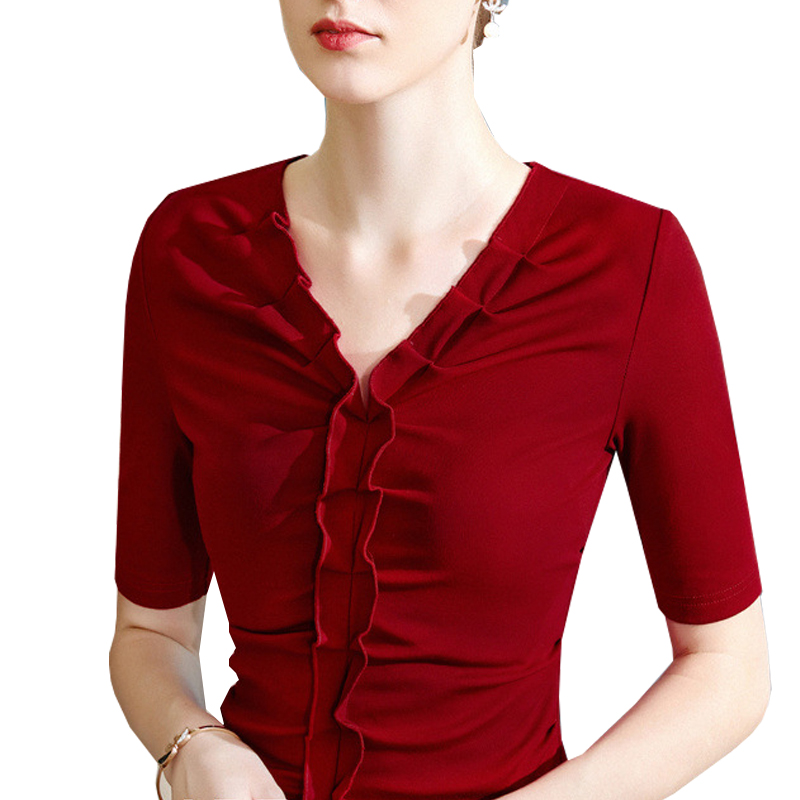 Spring and summer new v-neck women's ruffles mid-sleeve Latin dance tops dance national standard modern friendship dance practice clothing