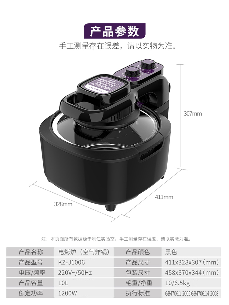 Liren KZ-J1006 air fryer family new 10 liter super-large capacity electric fryer French fries machine air pan