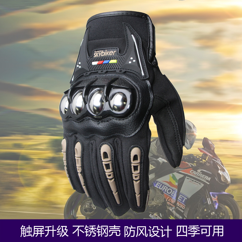 Motorcycle Gloves Stainless Steel Hard Shell Windproof Riding Locomotive Four Seasons Cycling Touch Screen Anti-fall Racing Knight Equipment