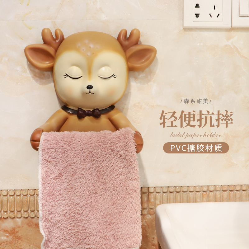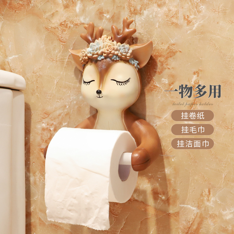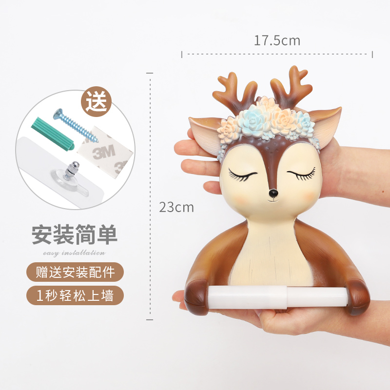 Cartoon Animal Makeup Room Paper Towel Box Creative Plum Blossom Deer Vari Rolls Paper Cylinder Toilet Free of perforated shelves wall-mounted