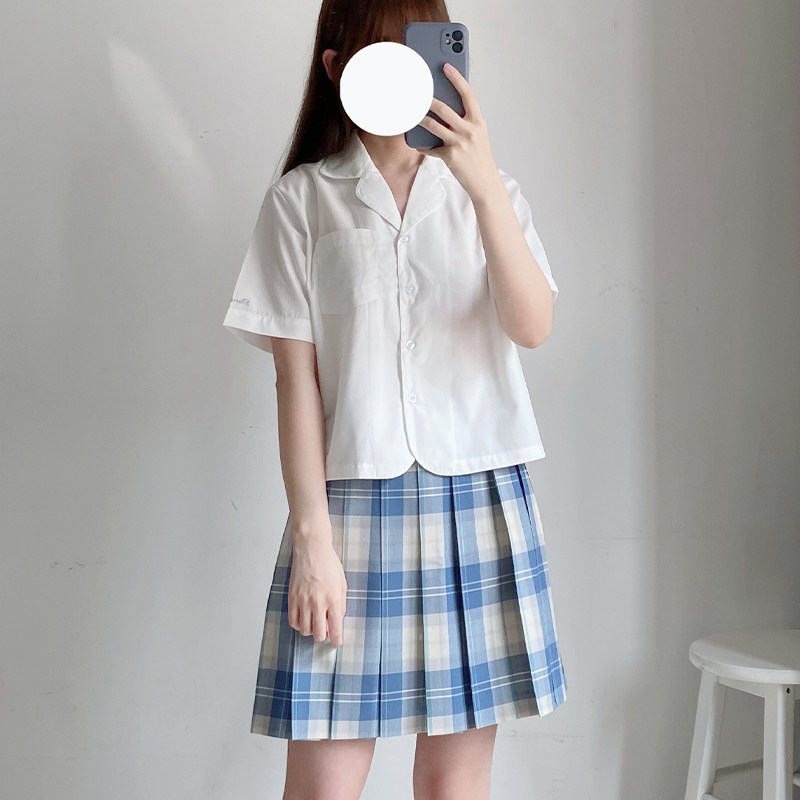 Spot Wood Hibiscus Woman Changed Version Straight Original Student Uniform Open Flap Short Sleeve Short shirt Summer