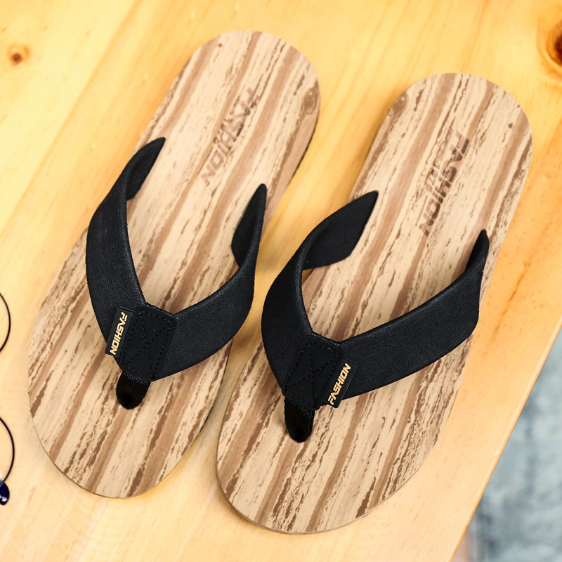 Flip-flops men's summer fashion casual flip-flops wooden grain tide outside wear non-slip breathable beach outdoor sandals