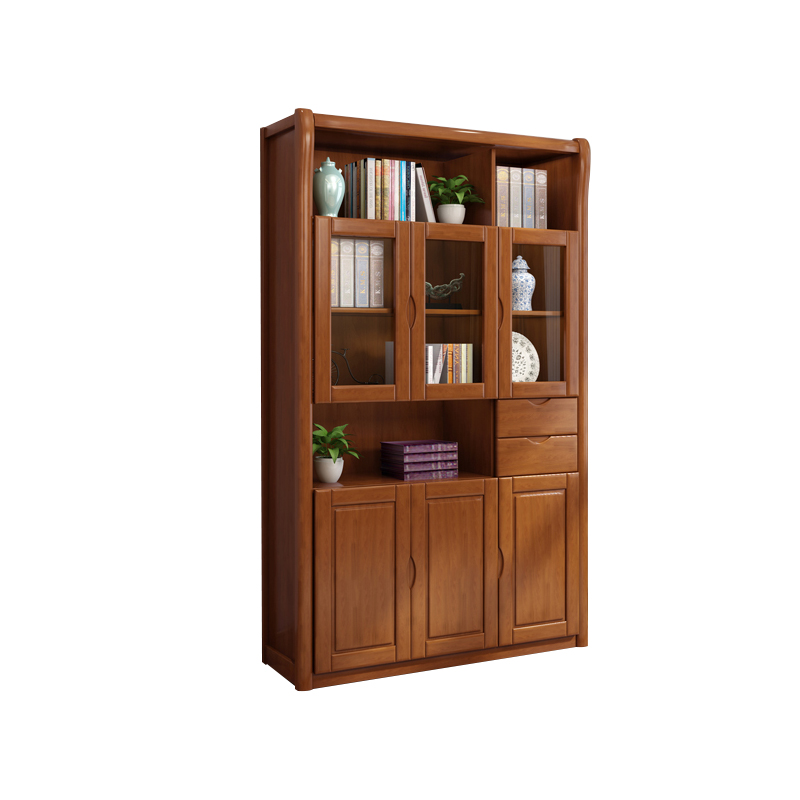 Solid wood bookcase with glass door corner cabinet free combination door bookcase modern Chinese storage bookshelf study furniture