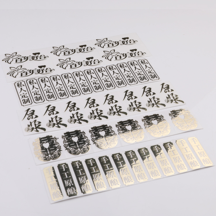Relief Gold Sticker Gold Word Metal Patch Toasted Floral Wine Sign Wedding Celebration Enterprise Private Custom Box Sticker Bottle Sticker