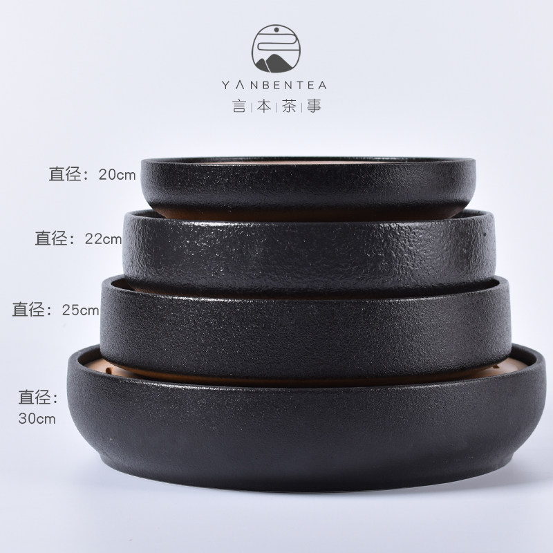Word of the day Style Zen Wind Black Pottery Dry Bubble Pan Ceramic Kutian Tea Furniture Household Brief Tea Tray Tea Sea Storage Water Storage
