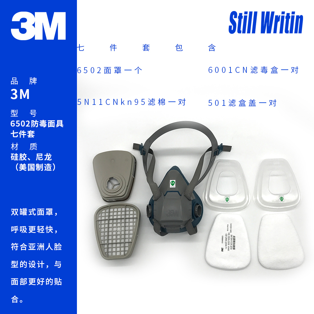 American 3M6502 Silicone Gel Graffiti Mask Anti-Gas Mask Durable Comfort KN95 Filter Cotton 7 Pieces Bagged Bag