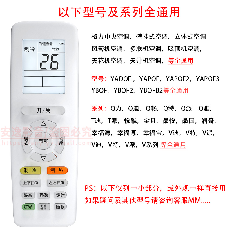 Applicable to the original Gree air conditioning remote control YAPOF Gree hanging cabinet machine central air conditioning energy saving yapof original version of Gree universal air conditioning remote control