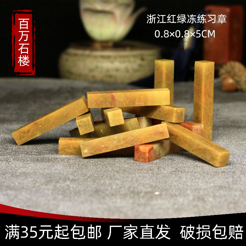 Sushan Shijiang Red Green Frozen 0 8*0 8*5CM Indian Stone Practice Seal Seal for Beginners of Sushan Sushishan