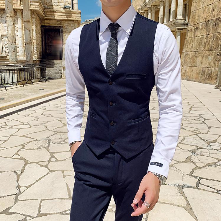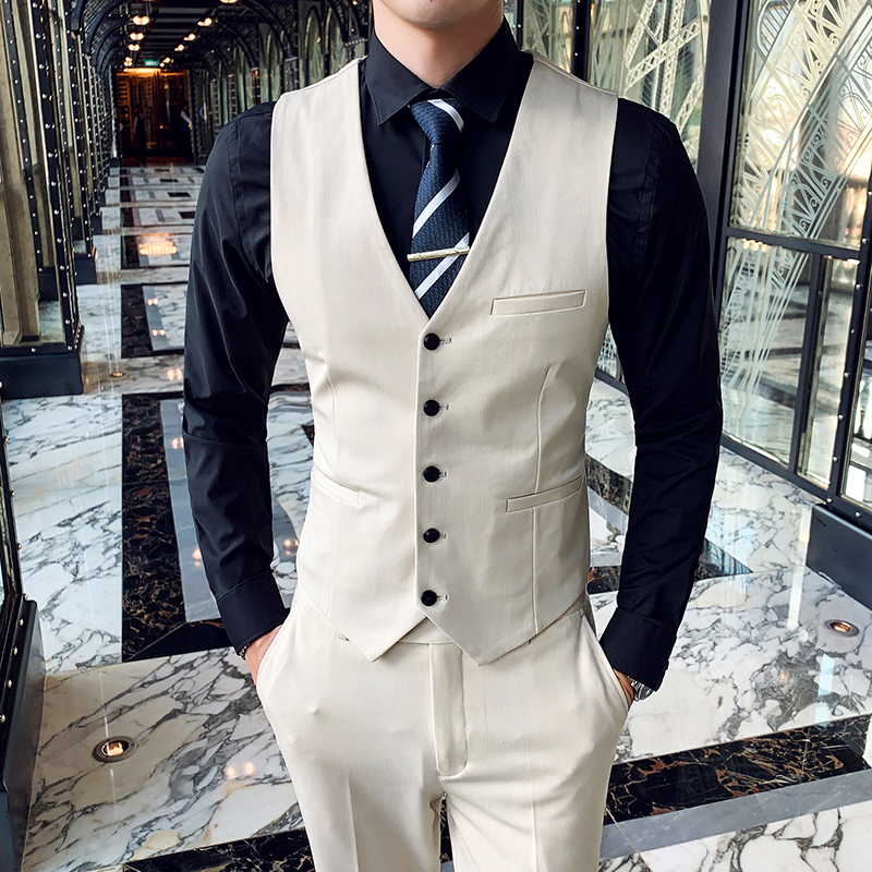 Spring and Autumn Suit Vest Suit Men's Business Trendy Korean Style Slim British Three-piece Suit Groom Wedding Dress