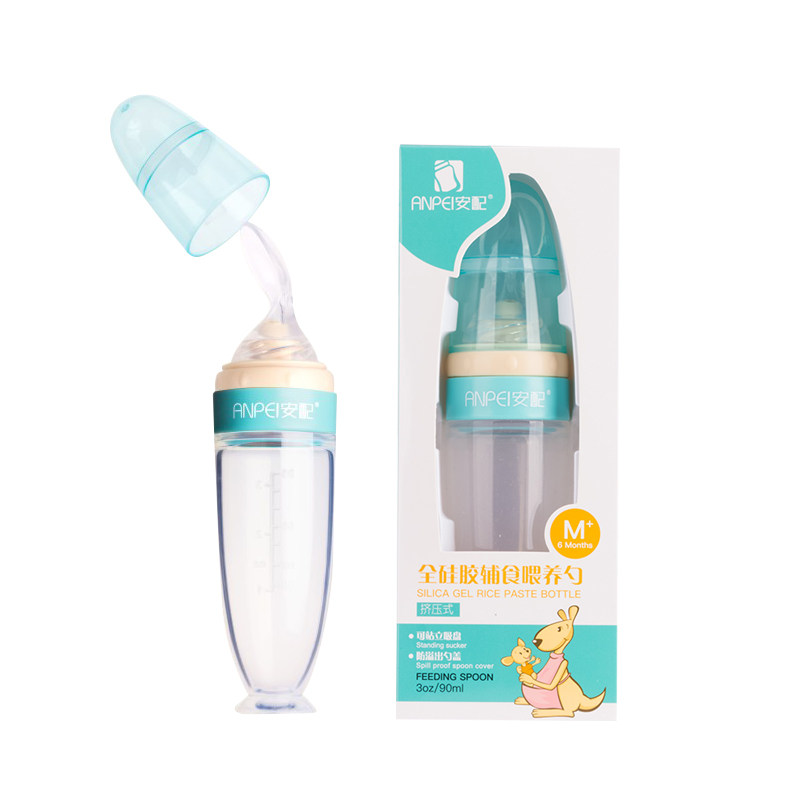 Anpai baby silicone milk mixing spoon Bottle extruder Baby rice flour non-staple food extrusion feeding spoon feeder
