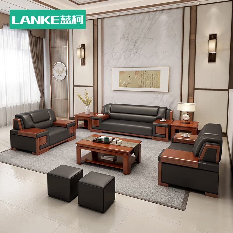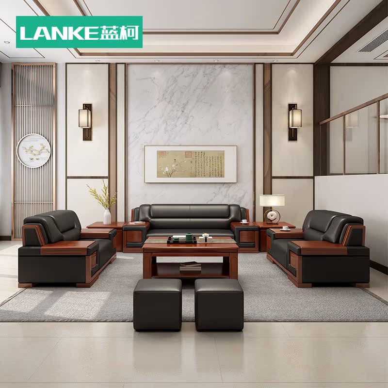Lan Ke office sofa coffee table business modern Chinese style office sofa reception three-seat leather sofa