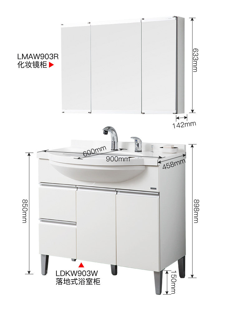 TOTO bathroom cabinet LDKW903W Floor-standing wash basin Pull-out faucet locker 90cm