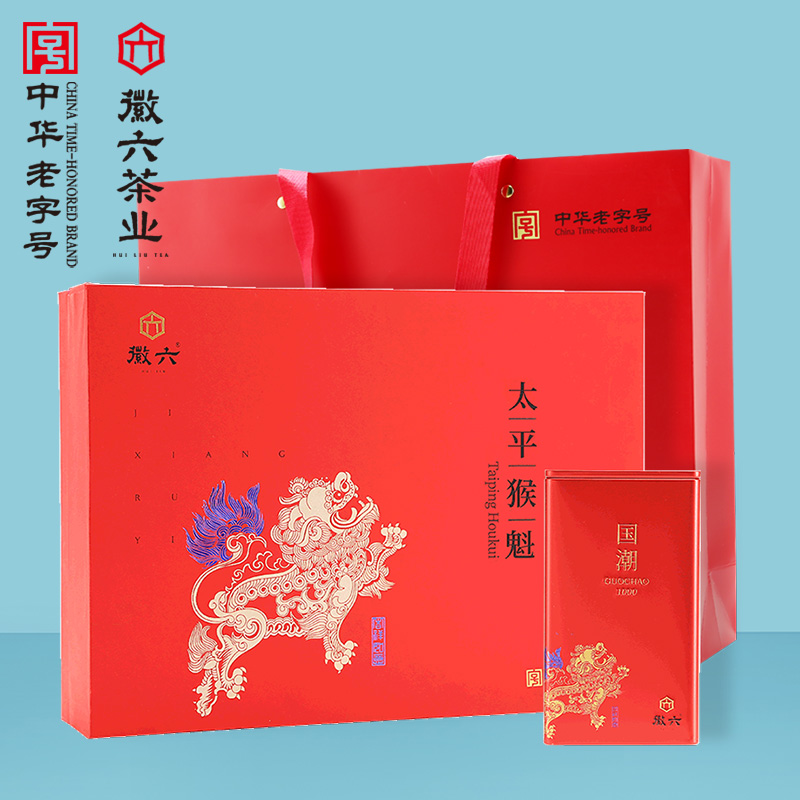 (2022 new tea listed) Emblem Six Handmade Pinching Tips Taiping Green Tea Tea Gift Box Bottling Country Tide Red 200g