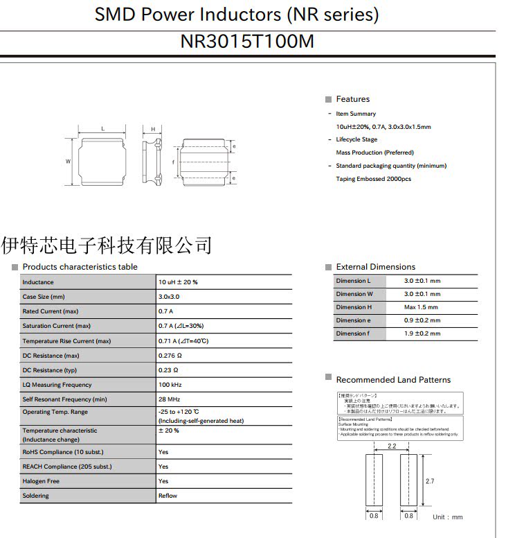 Ultra-thin magnetic glue power inductor NR3015T100M 3*3*1 5 10UH 3015 0 7A too tempting