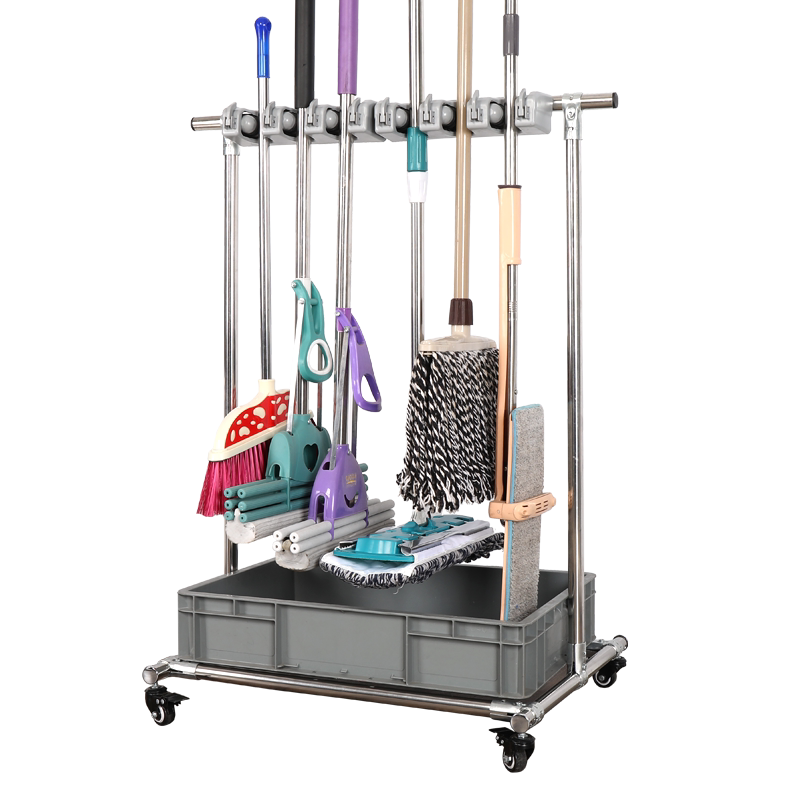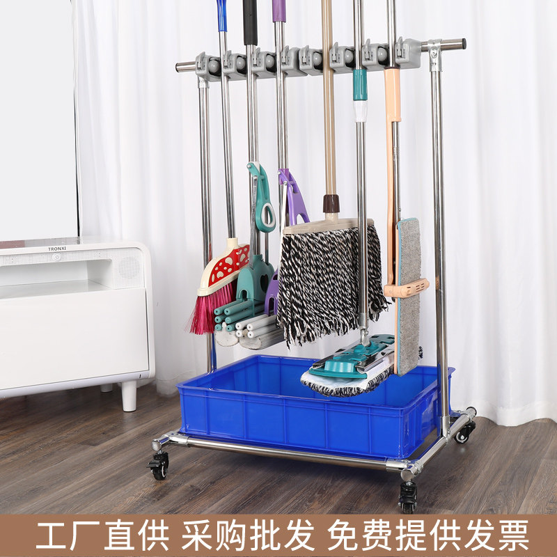 Stainless steel mop rack broom rack hanging free punching floor-to-ceiling removable hook toilet drain finishing tool